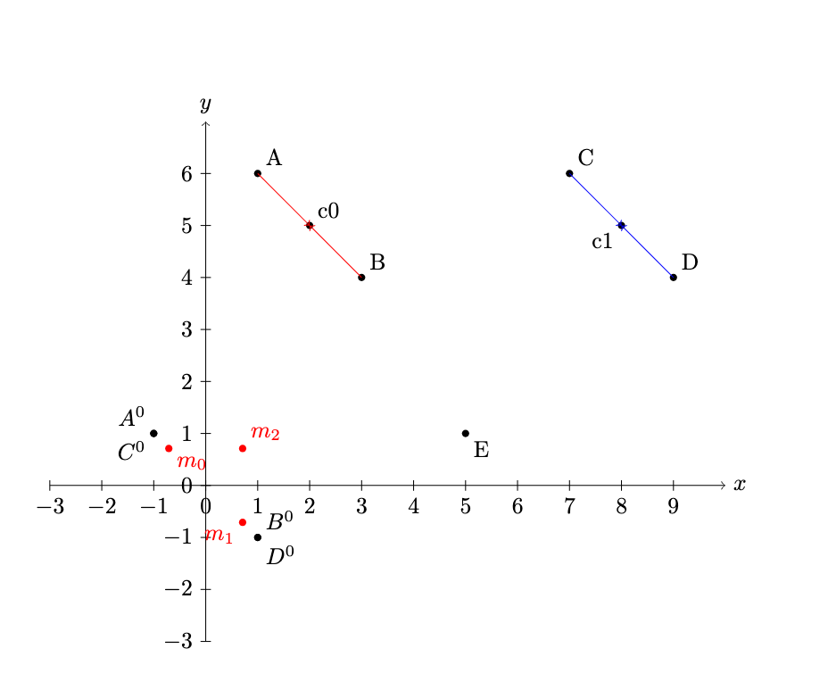 每个子中心 减去父簇中心,统一到以原点为参考的坐标系: